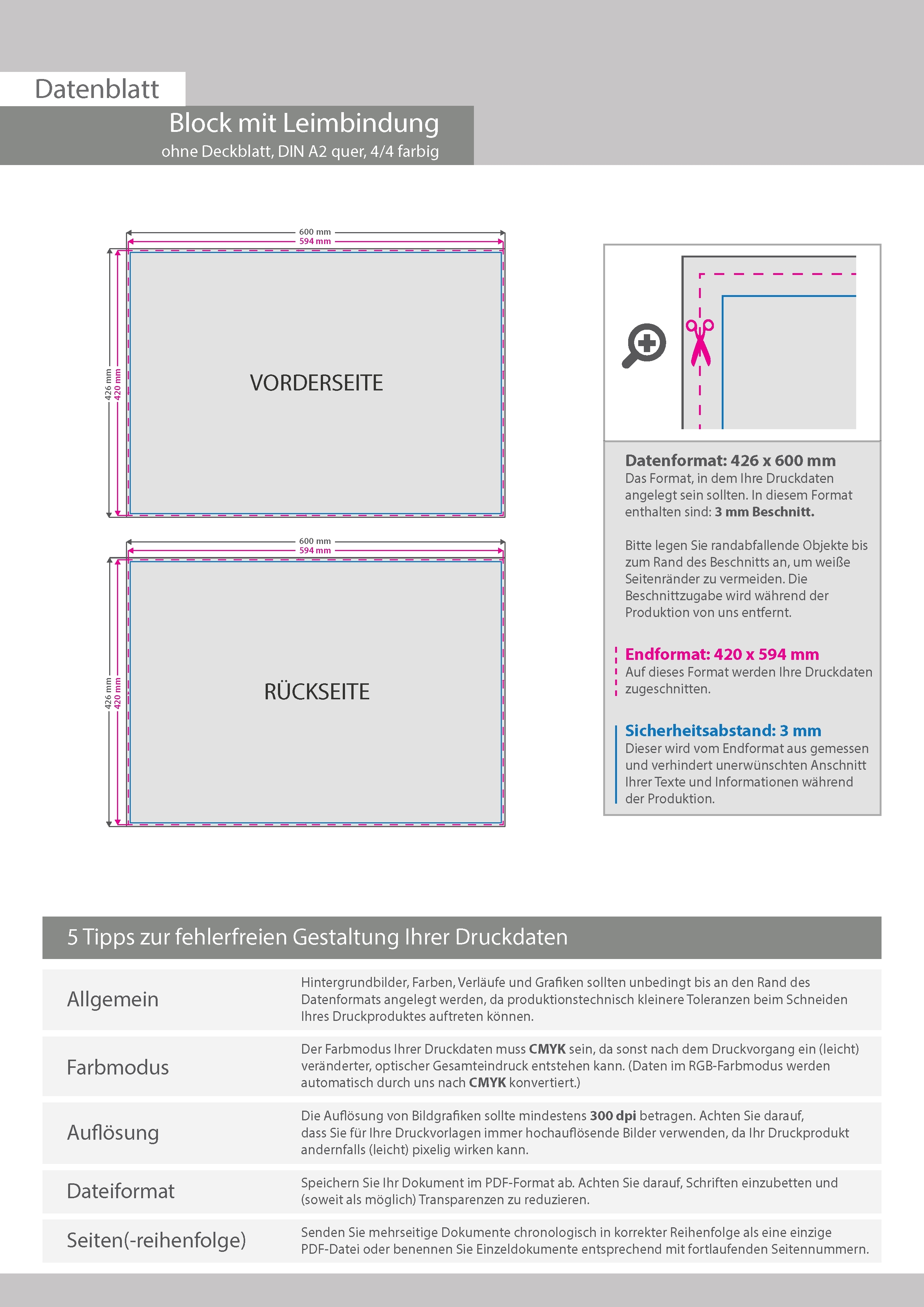 Block mit Leimbindung, DIN A2 quer, 25 Blatt, 4/4 farbig beidseitig bedruckt