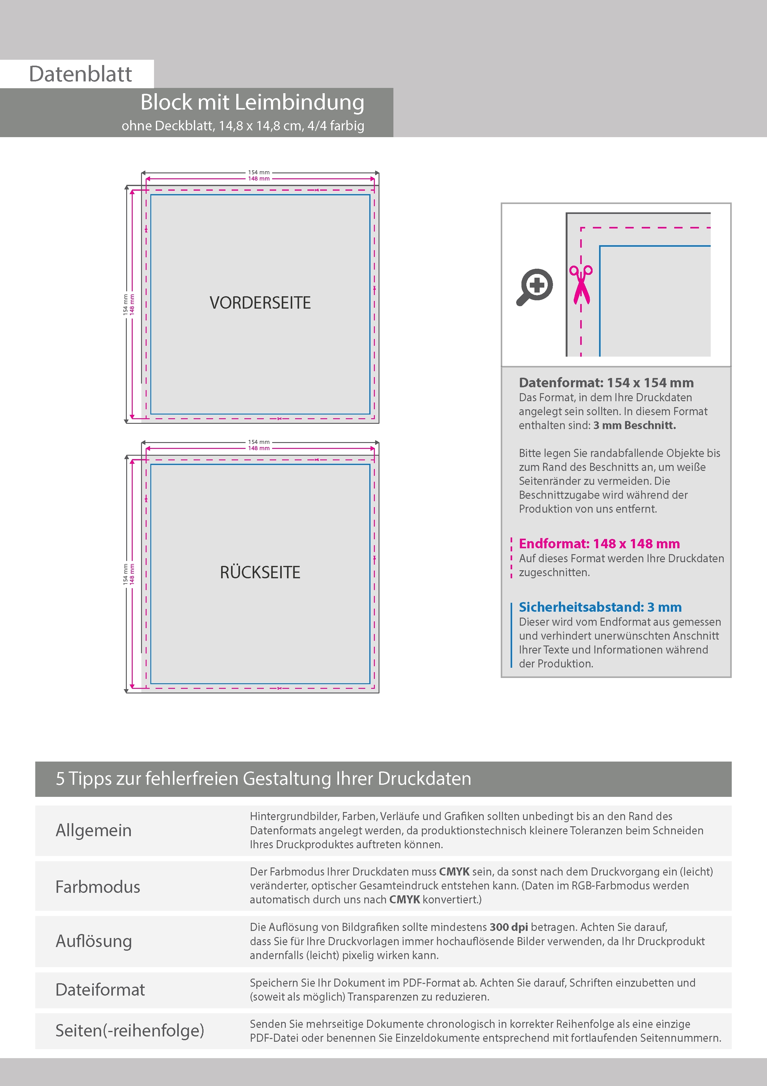 Block mit Leimbindung, 14,8 cm x 14,8 cm, 25 Blatt, 4/4 farbig beidseitig bedruckt