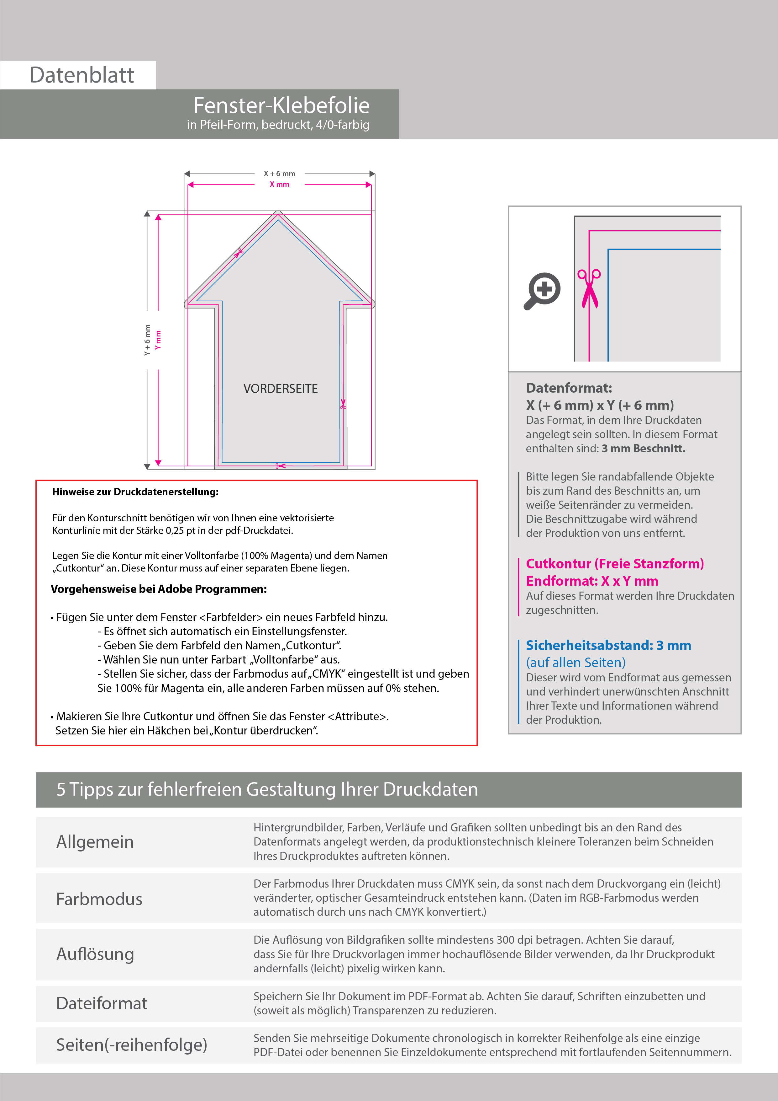 Fenster-Klebefolie 4/0 farbig bedruckt in Pfeil-Form konturgeschnitten