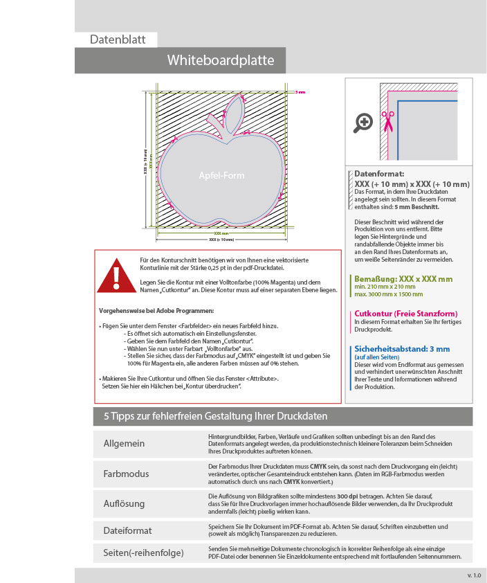 Whiteboardplatte in Apfel-Form konturgefräst unbedruckt