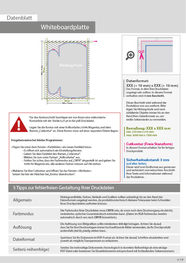 Whiteboardplatte in Bierkrug-Form konturgefräst unbedruckt