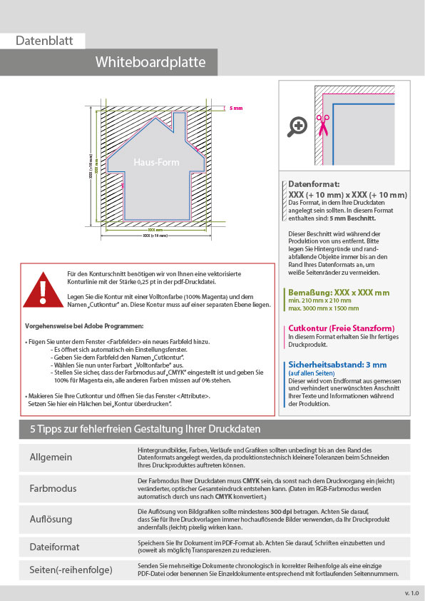 Whiteboardplatte in Haus-Form konturgefräst unbedruckt