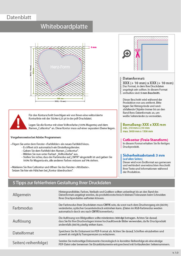 Whiteboardplatte in Herz-Form konturgefräst unbedruckt