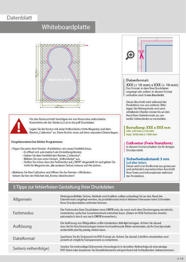 Whiteboardplatte in Mensch-Form konturgefräst unbedruckt