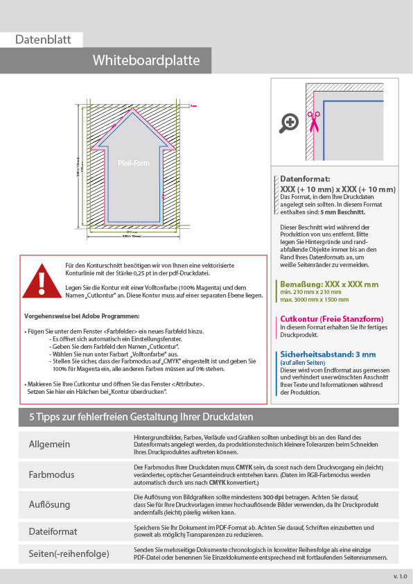 Whiteboardplatte in Pfeil-Form konturgefräst unbedruckt