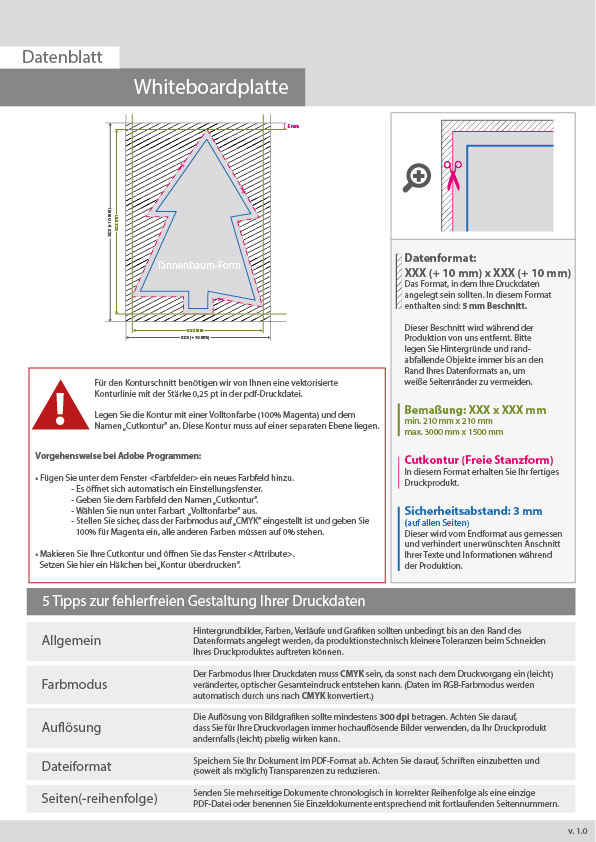 Whiteboardplatte in Tannenbaum-Form konturgefräst unbedruckt