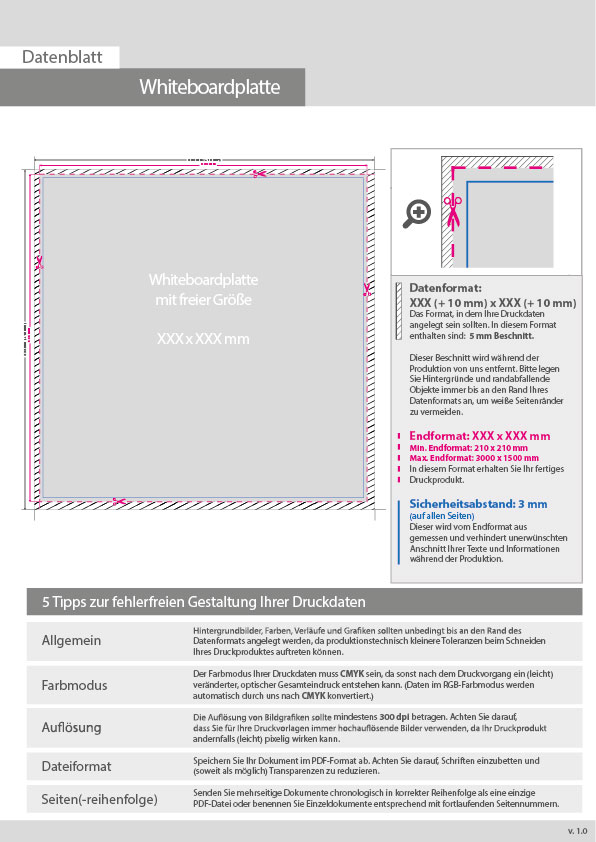 Whiteboardplatte mit freier Größe (rechteckig) unbedruckt