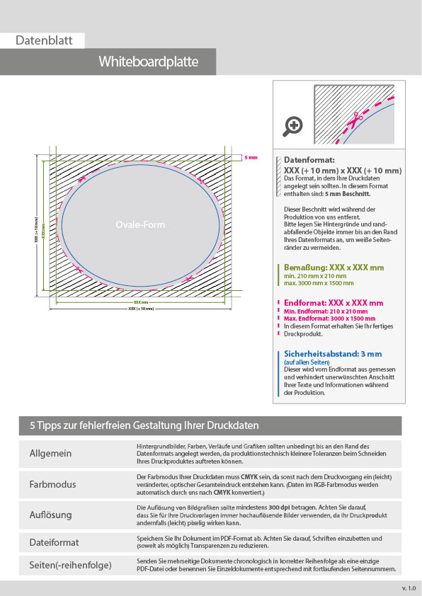 Whiteboardplatte oval (oval konturgefräst) unbedruckt