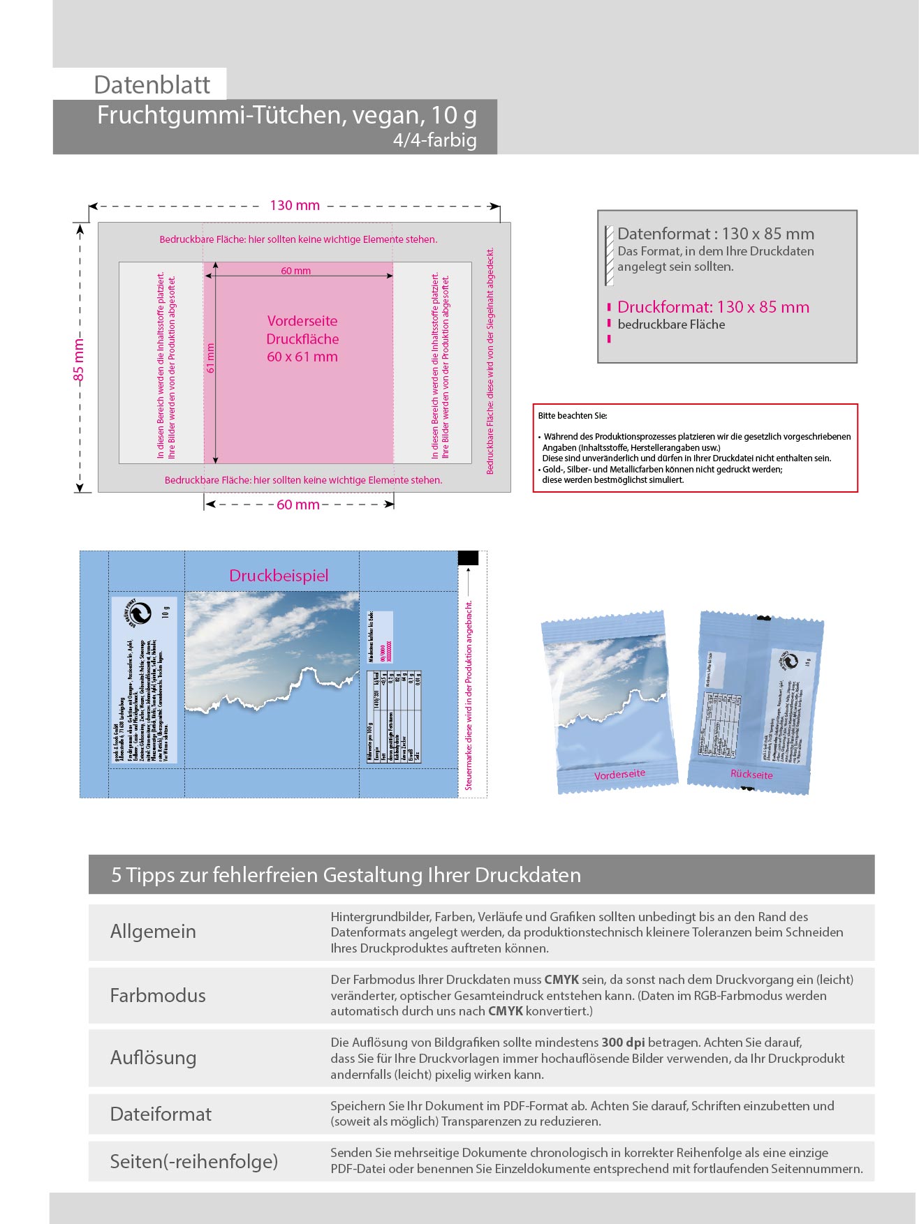 Vegane Gummibärchen 10g Tütchen, 4/4 farbig beidseitig bedruckt