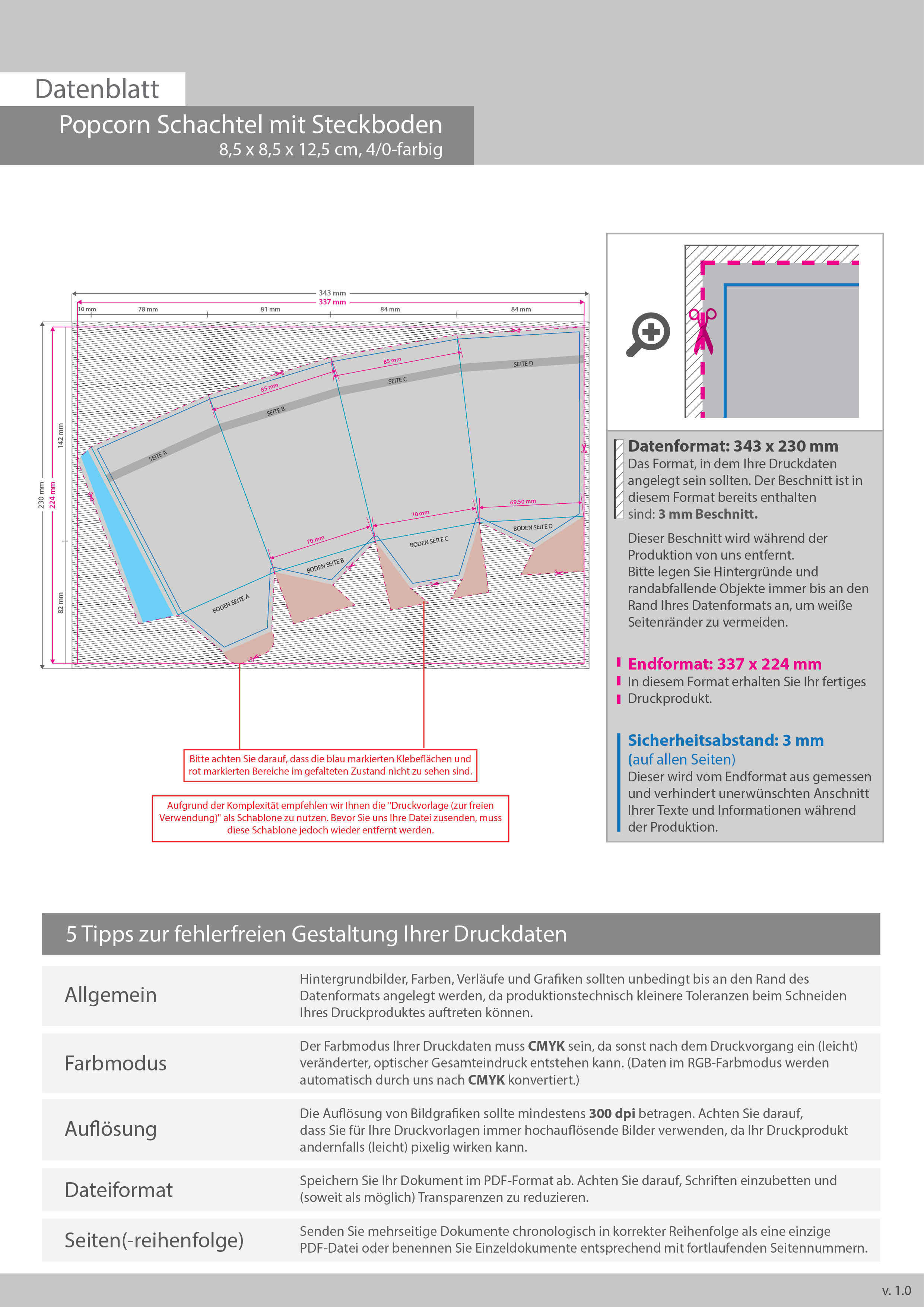Popcorn Schachtel mit Steckboden (8,5 x 8,5 x 12,5 cm) einseitig bedruckt 4/0-farbig