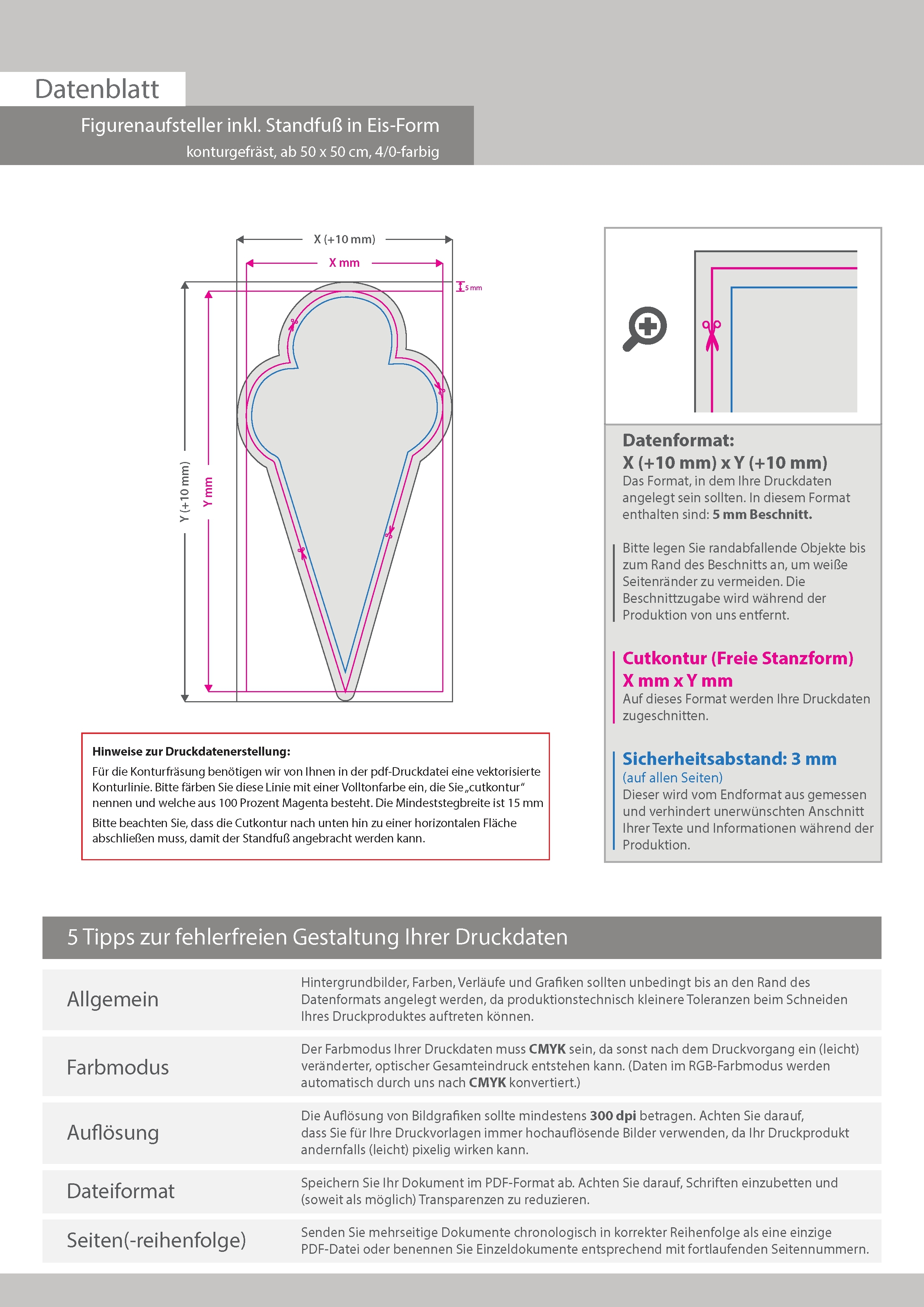 Figurenaufsteller inkl. Standfuß in Eis-Form konturgefräst, einseitig 4/0-farbig bedruckt