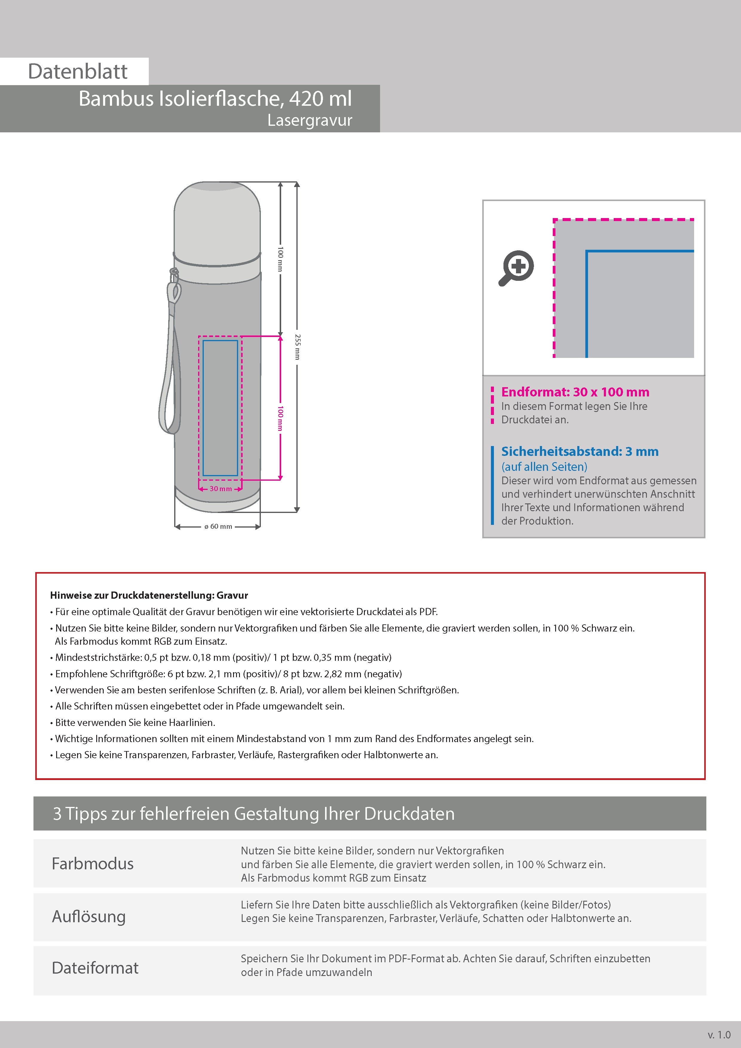 Bambus Isolierflasche 420 ml mit einseitiger Lasergravur