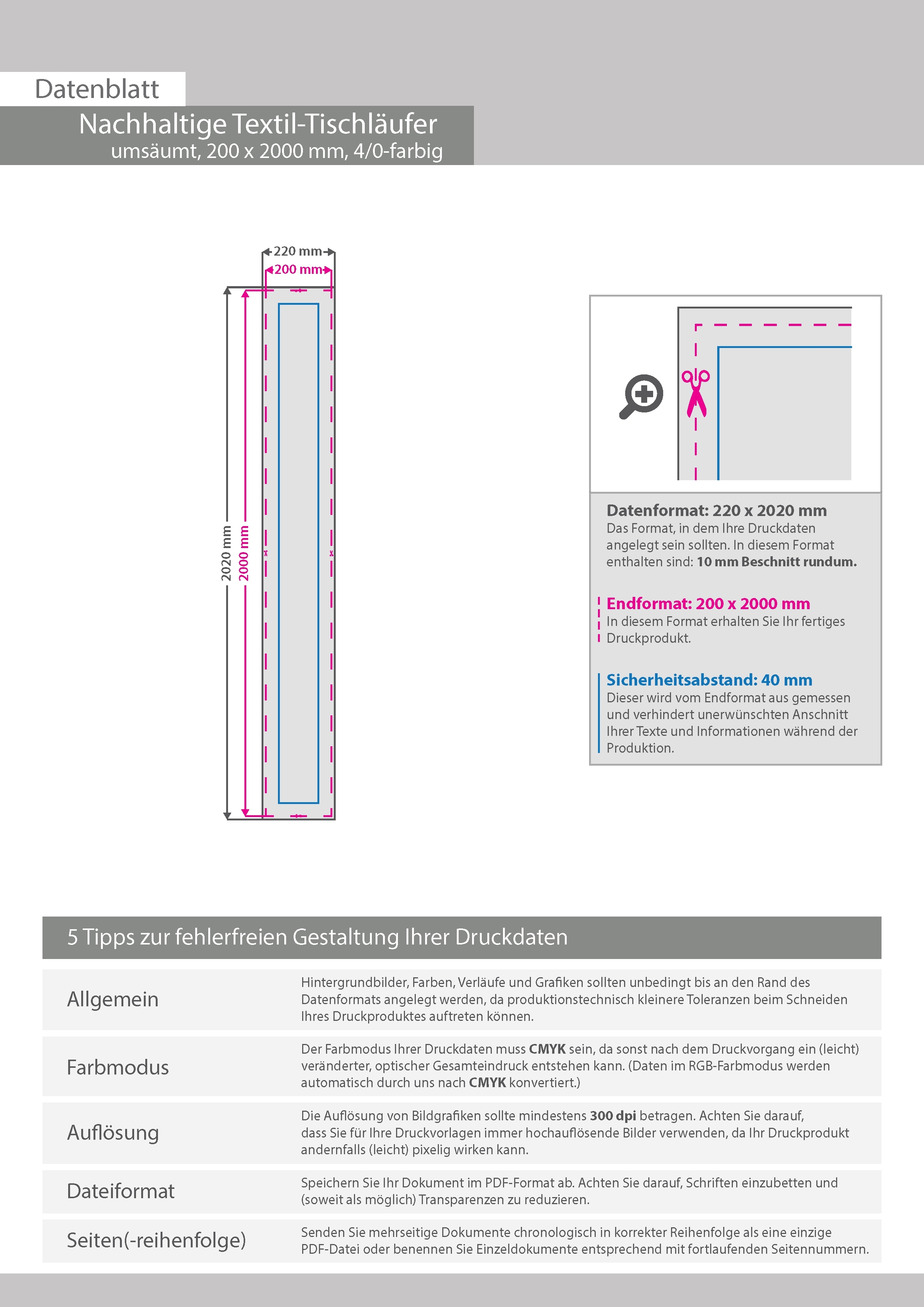 Nachhaltige Textil-Tischläufer 20 x 200 cm, 4/0-farbig bedruckt, umsäumt