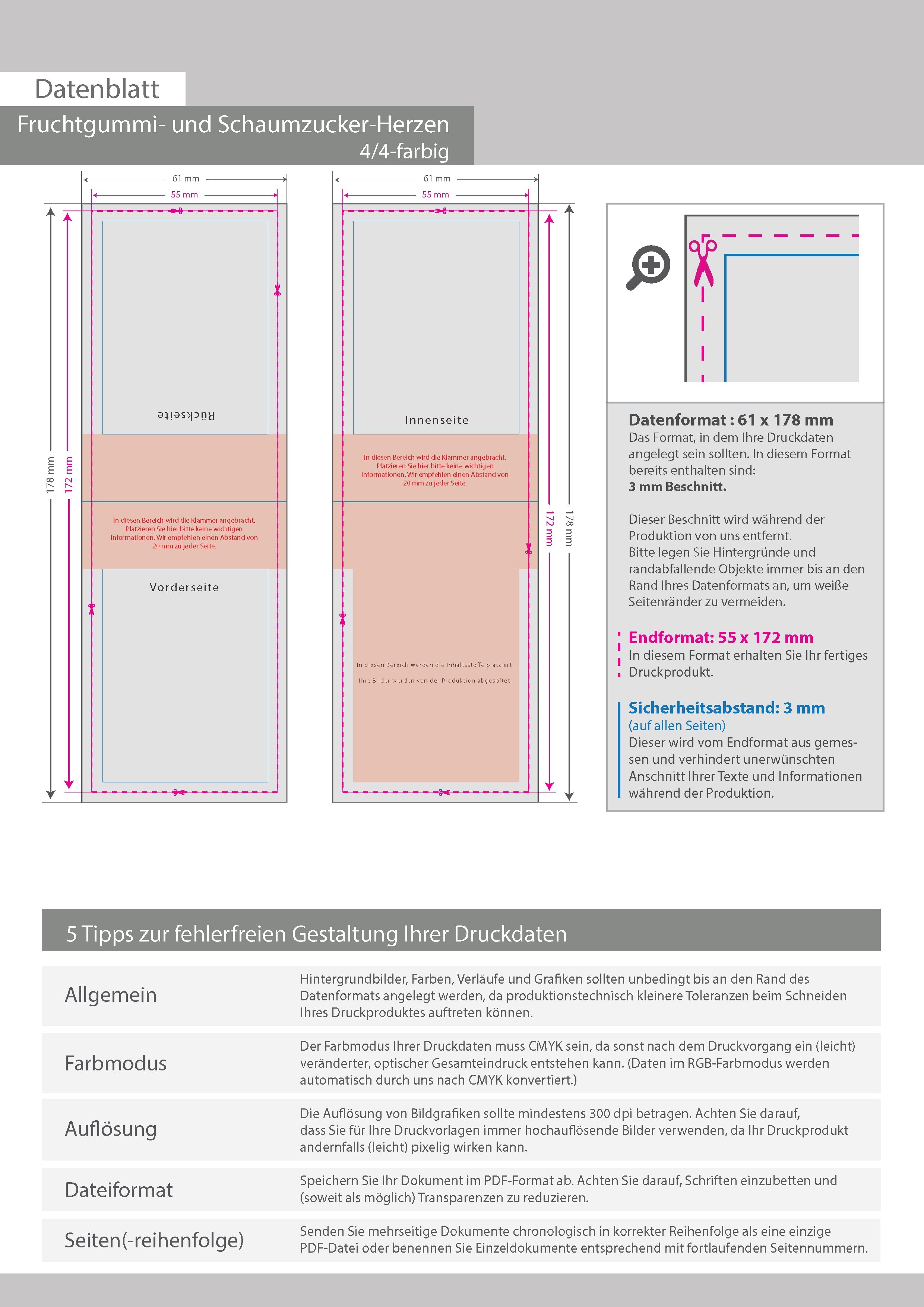 Fruchtgummi- und Schaumzucker-Herzen im 65g Folienbeutel, 4/4-farbig zweiseitig bedruckt