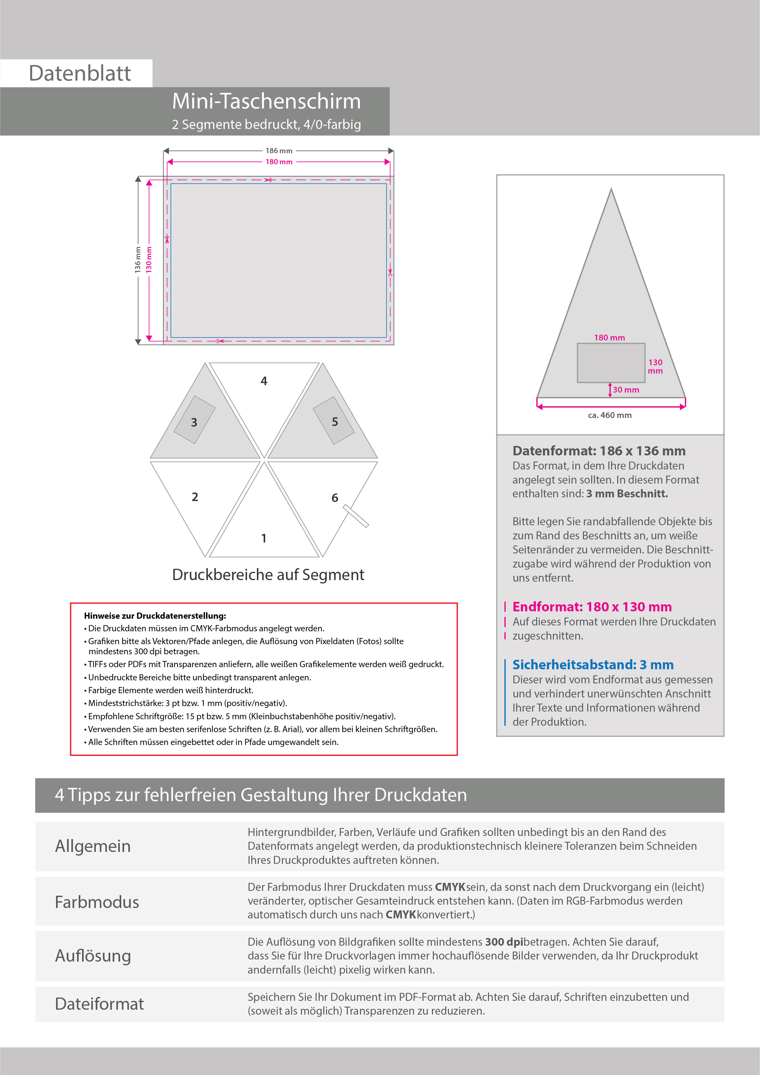Mini-Taschenschirm mit Einkaufstasche aus RPET, 4/0-farbig, 2 Segmente bedruckt