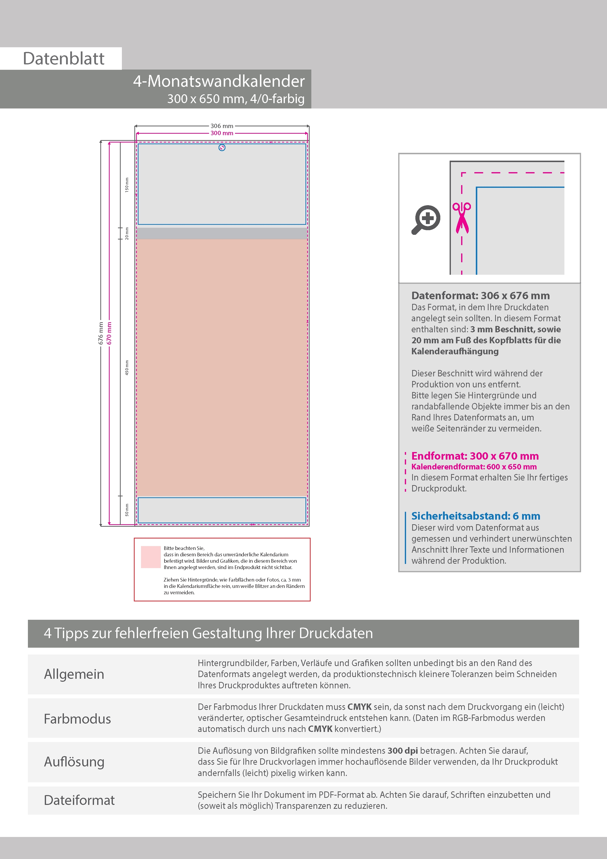 4-Monatskalender mit individuell bedrucktem Kopf- und Fußteil (4/0-farbig)