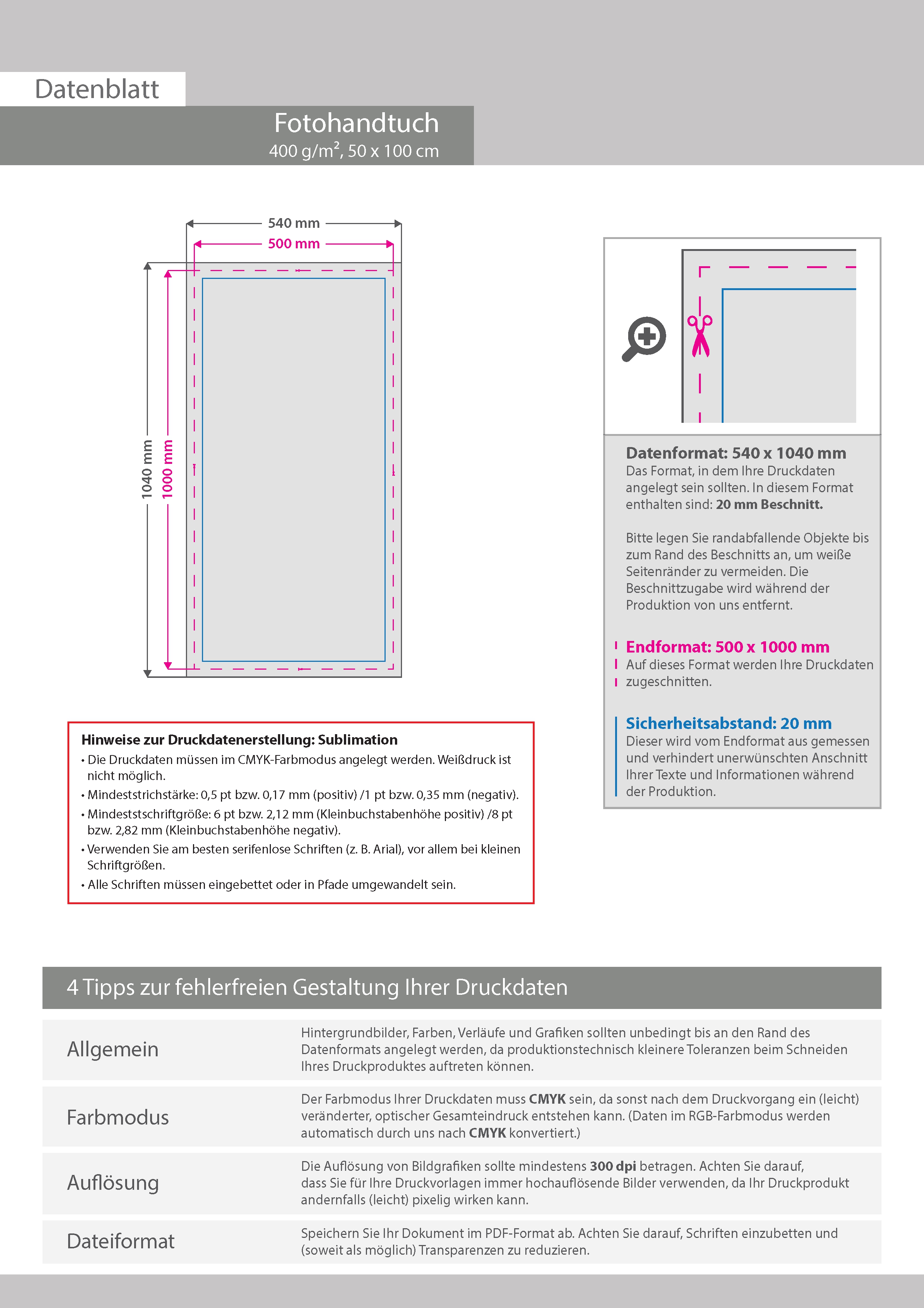 Fotohandtuch, 400 g/m², 50 x 100 cm