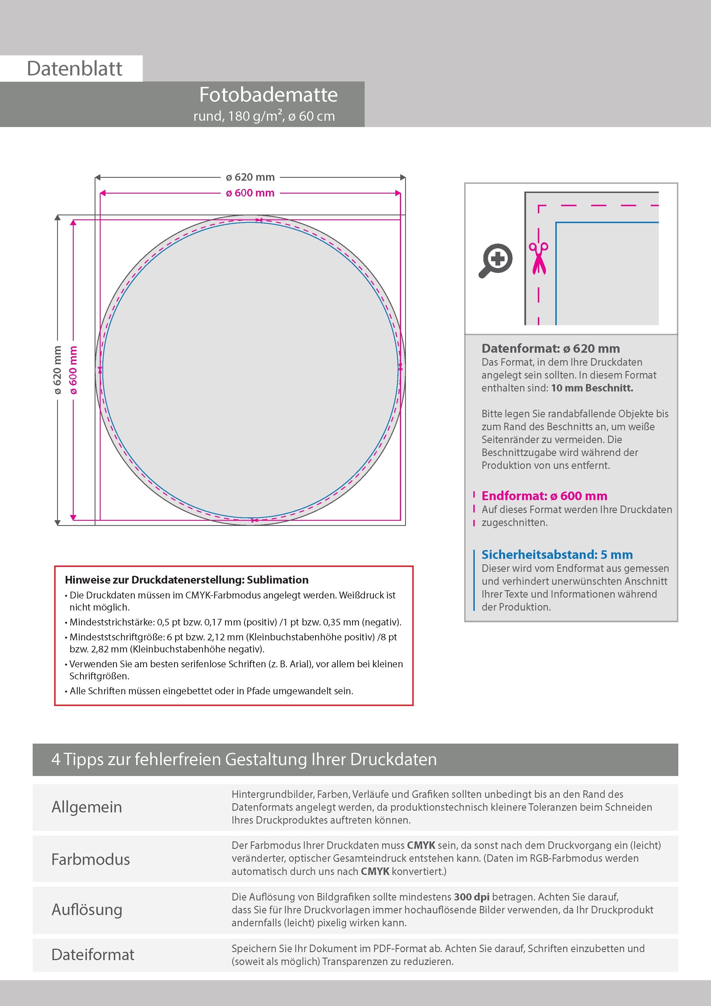 Fotobadematte rund, 180 g/m², ø 60 cm