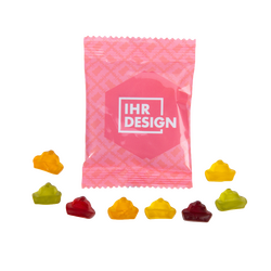 Mit unseren Fruchtgummi-Schiffen in individuell bedruckbaren Tütchen setzen Sie Ihre Werbebotschaft kreativ in Szene. Ideal für Reisebranche, Schifffahrtsbetriebe, Werften oder maritime Events, die kleinen Fruchtgummis in Schiff-Form begeistern Kunden und Gäste gleichermaßen.