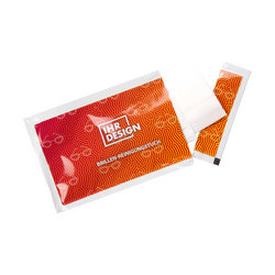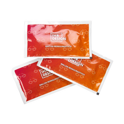Gestalten Sie Brillen-Reinigungstücher in individueller Verpackung, die nicht nur praktisch sind, sondern auch einen bleibenden Eindruck hinterlassen. Ideal für Optiker, Augenarztpraxen, Apotheken, Messen oder Promotionsaktionen. Jedes Tütchen kann mit Ihrem Logo, Slogan oder eigenen Motiven bedruckt werden und wird so zu einem einzigartigen Werbemittel.